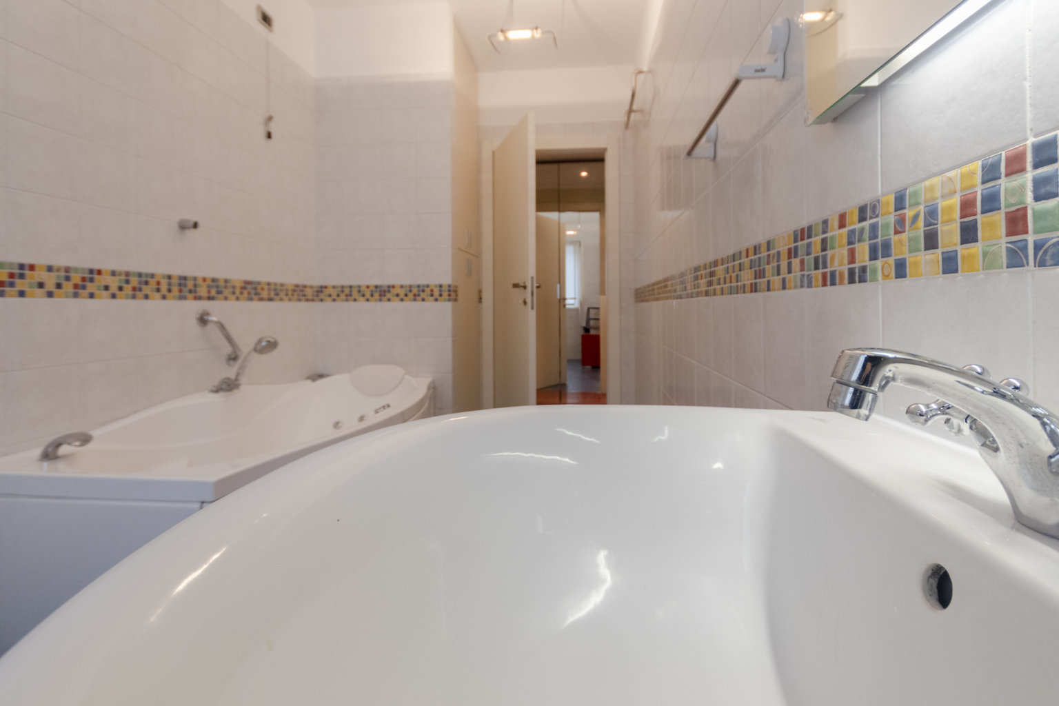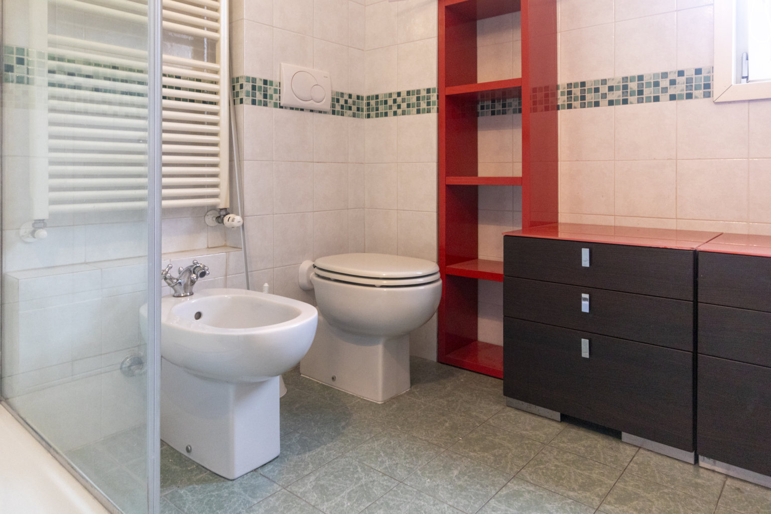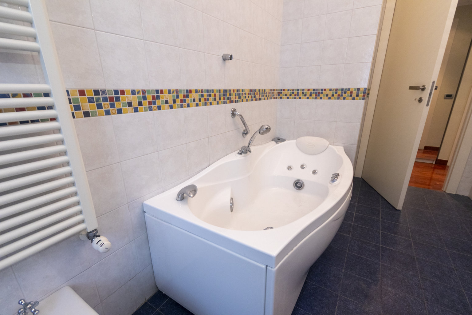 Entrambi i bagni, rivestiti in ceramiche di pregio, offrono un’oasi di benessere: uno dotato di lussuosa vasca idromassaggio, l’altro con moderna doccia. Il sistema di riscaldamento a pavimento, diffuso in tutta la casa, assicura un comfort termico ottimale (esclusi i bagni, serviti da pratici scalda salviette). L’efficienza è completata dall’impianto di aria condizionata canalizzata (appena rifatto) e da un impianto di rilevazione incendi (anch’esso nuovo).